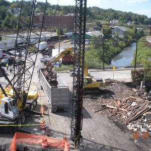 It consists of the replacement of an existing structure (Wayne Street Viaduct) with a five span 550’ prestress concrete I-Beam and Box Beam Bridge on steel beam bearing piles. It also includes approach work, MSE walls, signal work, highway lighting, drainage, and sewer relocation.